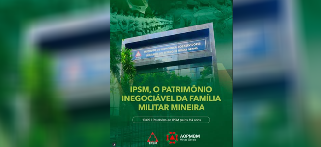Neste dia 19 de setembro, aniversário de 114 anos do IPSM, a AOPMBM reafirma seu orgulho e a defesa permanente desse patrimônio da família militar mineira.