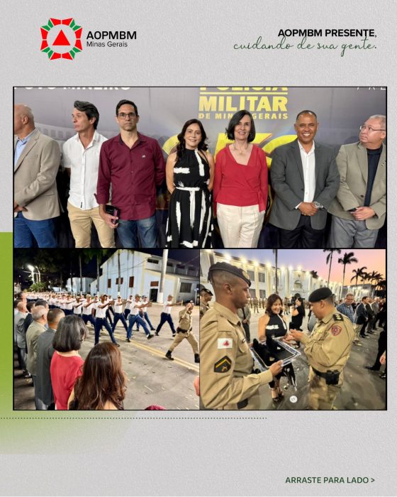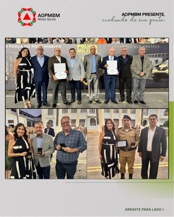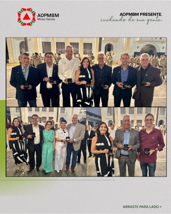 Na cerimônia, o presidente da AOPMBM, Cel Ailton Cirilo, recebeu uma homenagem pela colaboração e apoio da entidade aos Aspirantes 90, que tem como integrante a 1ª vice-presidente da AOPMBM, Cel Rosângela Freitas.