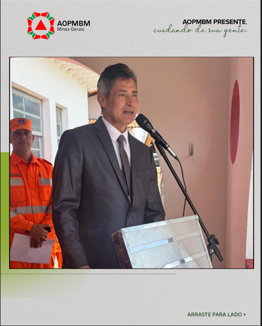 A AOPMBM prestigiou o evento e, na ocasião, o presidente da Associação, Cel Ailton Cirilo, foi representado pelo 2º vice-presidente, Maj BM Nivaldo Soares, acompanhado do diretor do Departamento do Militar Veterano (DMV), Cel BM Antônio Damásio.