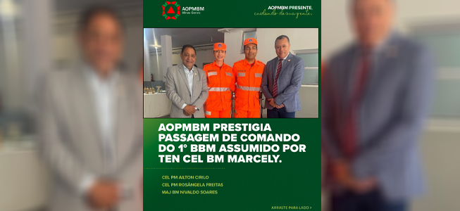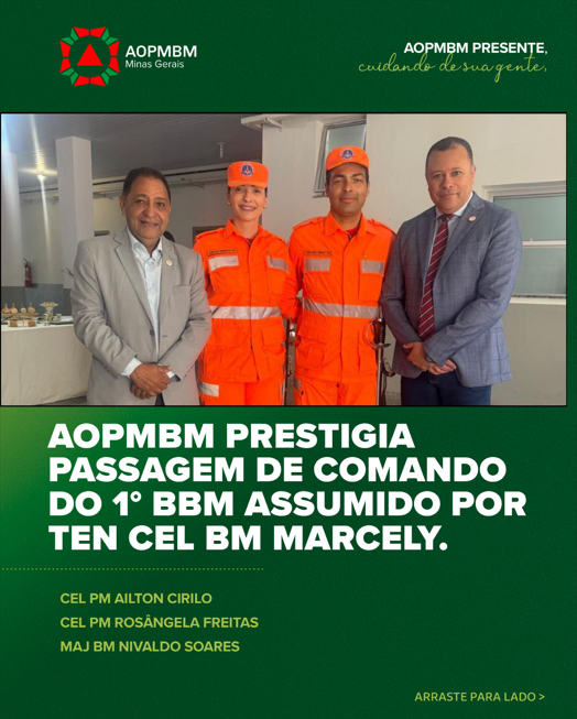 Marcando a passagem de comando do 1° Batalhão de Bombeiro Militar (1º BBM), do Ten Cel BM Abel Moura da Fonseca para a Ten Cel BM Marcely Izabel de Oliveira Camargos, o Corpo de Bombeiros Militar de Minas Gerais (CBMMG) realizou uma cerimônia, nesta quarta-feira (29/10), e a AOPMBM prestigiou a cerimônia.