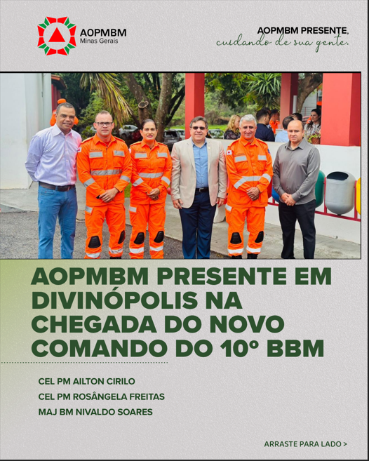 Com a presença de seus diretores regionais PM e BM, a Associação dos Oficiais marcou presença na solenidade da passagem de comando do 10° Batalhão de Bombeiros Militar (10º BBM), em Divinópolis, na última sexta-feira (31/10).
