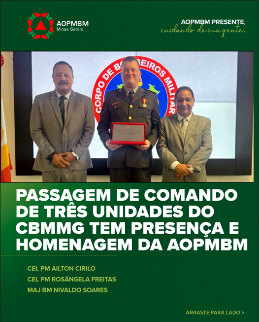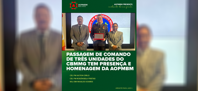 Marcando a passagem de comando conjunta de importantes unidades, o Corpo de Bombeiros Militar de Minas Gerais (CBMMG) realizou, na última sexta-feira (07/11), uma cerimônia da qual a AOPMBM participou, homenageando um dos oficiais.