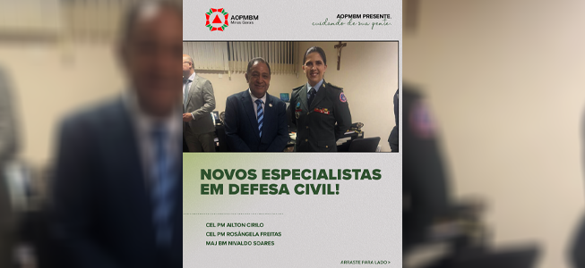 Na última sexta-feira (28/11), a diretoria da AOPMBM esteve presente na solenidade de formatura do CEGEDEC — Curso de Especialização em Gestão, Proteção e Defesa Civil.