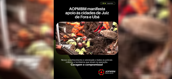 A AOPMBM manifesta apoio às cidades de Juiz de Fora e Ubá neste momento delicado, em que as forças de segurança seguem mobilizadas na operação de salvamento às vítimas de soterramento.
