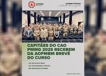 A AOPMBM, por meio do seu presidente, Cel Ailton Cirilo, parabeniza os novos aspirantes pela conquista e deseja sucesso nas funções e atividades que desempenharão.